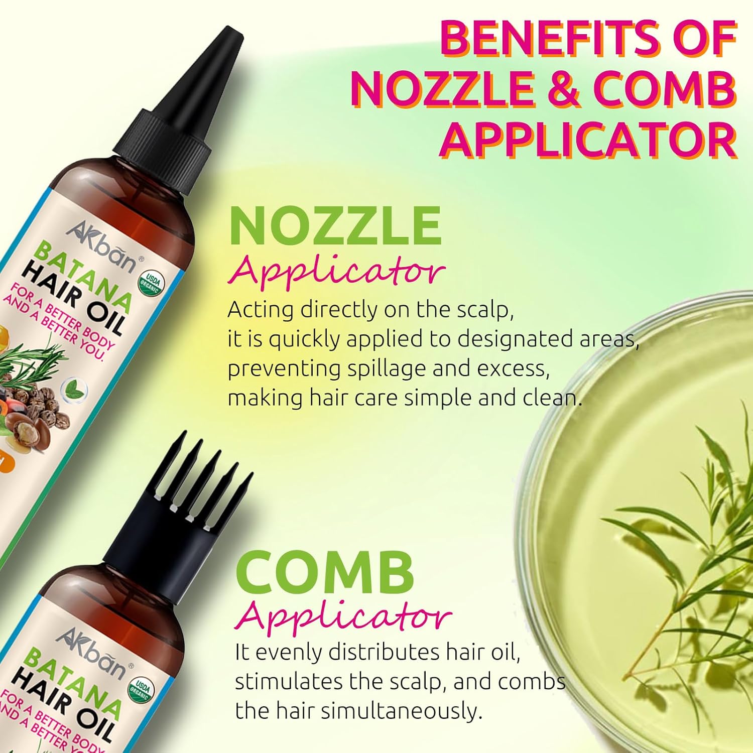 - DRIP TIP & COMB APPLICATOR β This Batana Rosemary Blend Hair Growth Oil can revitalize your hair. The drip tip and comb applicator make the application process more convenient.